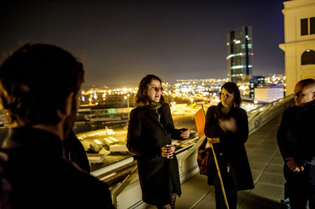 De l'immense salle de spectacles à la Salle des Mamelles, en passant par les bureaux de Villages Club du Soleil, membre du collectif Mécènes du Sud, les invités découvrirent au fil du parcours l'ensemble des projets portés par les artistes lauréats : Alexander Schellow, Benjamin Valenza, Eva Barto, Jean-Marc Chapoulie et Nathalie Quintane, Nicolas Giraud, Rémi Bragard, Vincent Ceraudo, Wilfried Almendra et Yann Serandour. Ce temps de visite itinérante s'est prolongé, comme toujours, par un moment d'échange et de convivialité au moment du vote des mécènes pour le Prix Coup de cœur 2015 attribué à… Nicolas Giraud, pour son projet L'exposition comme entreprise, comme scénario, comme exposition.